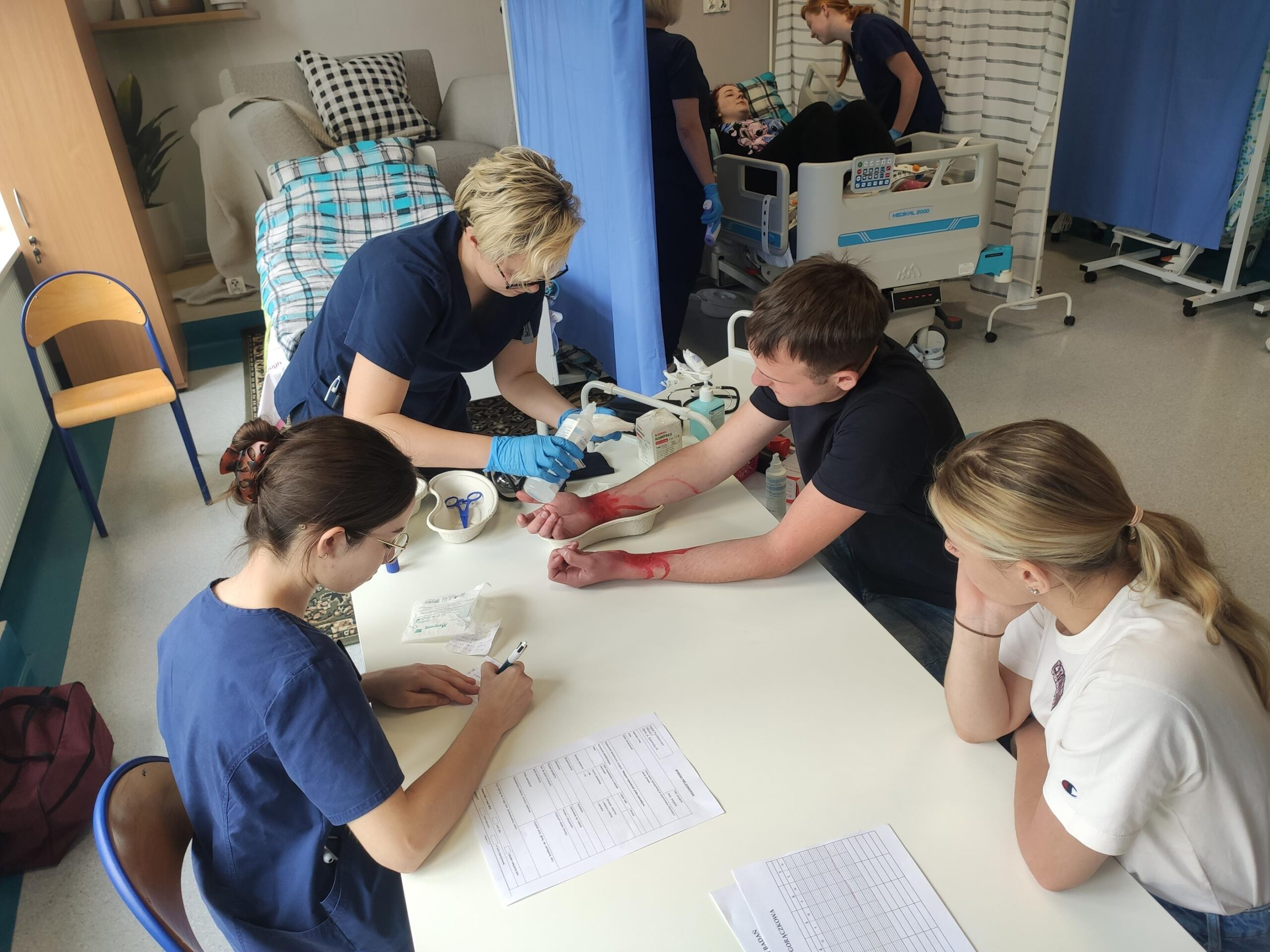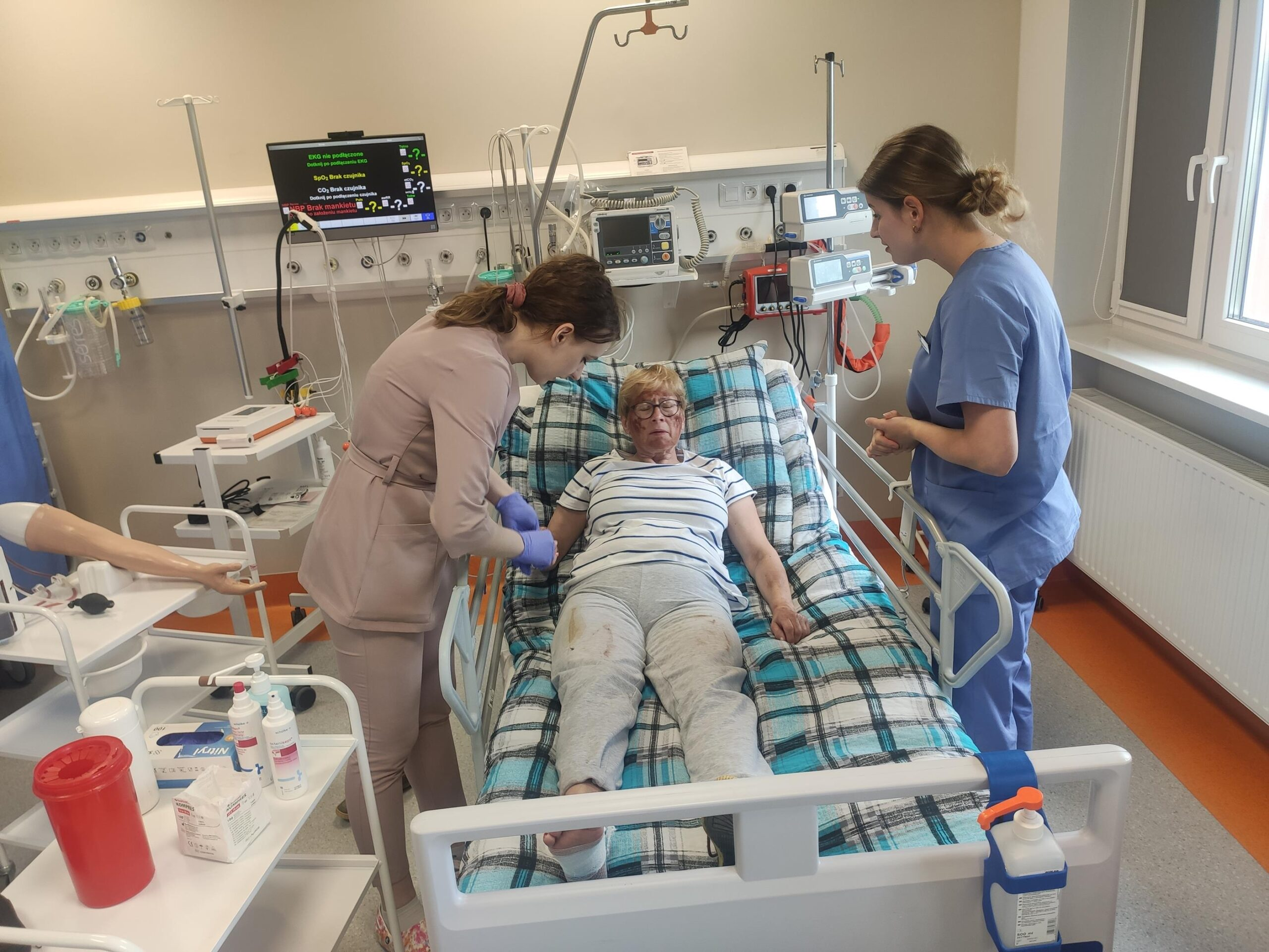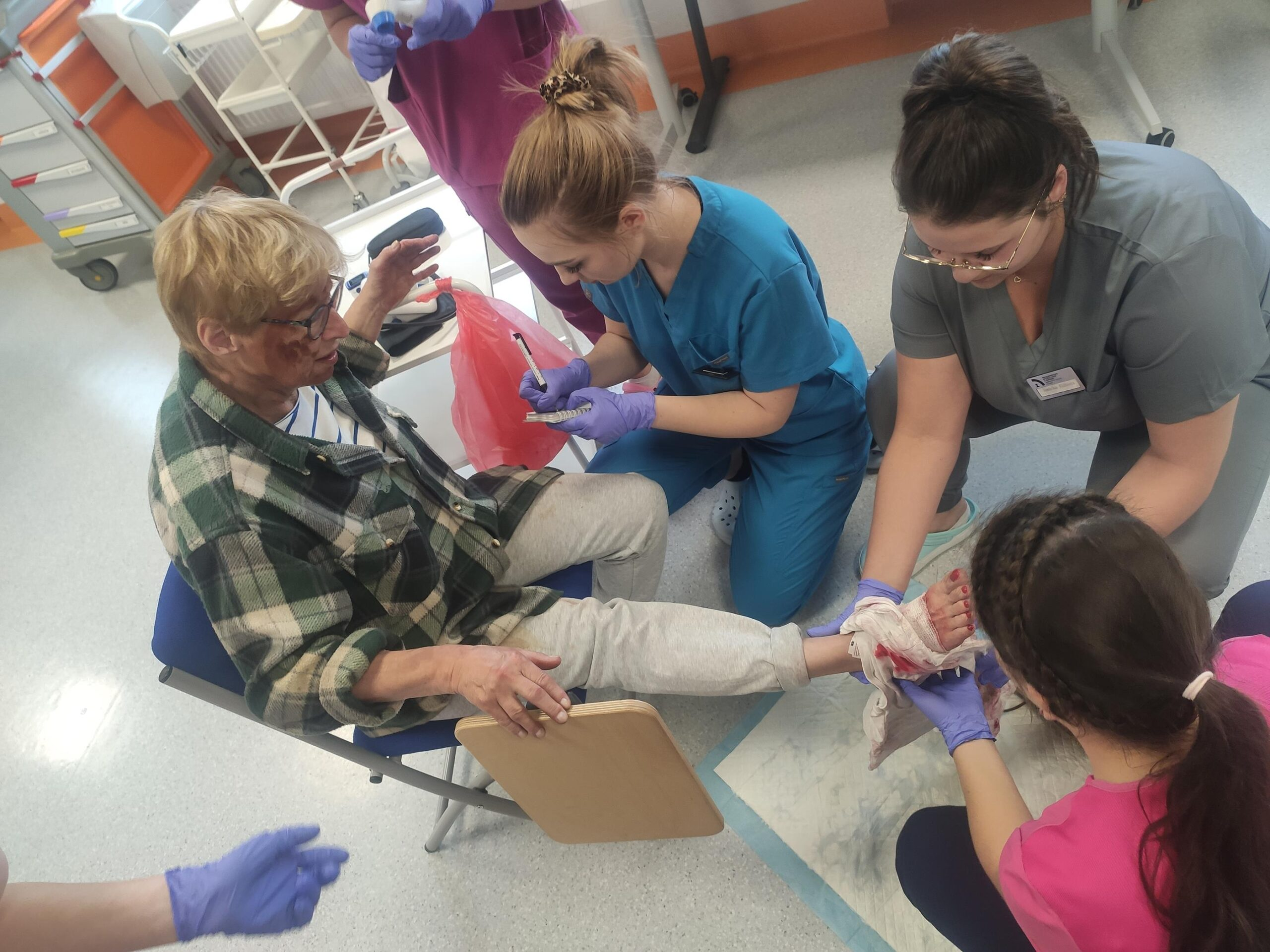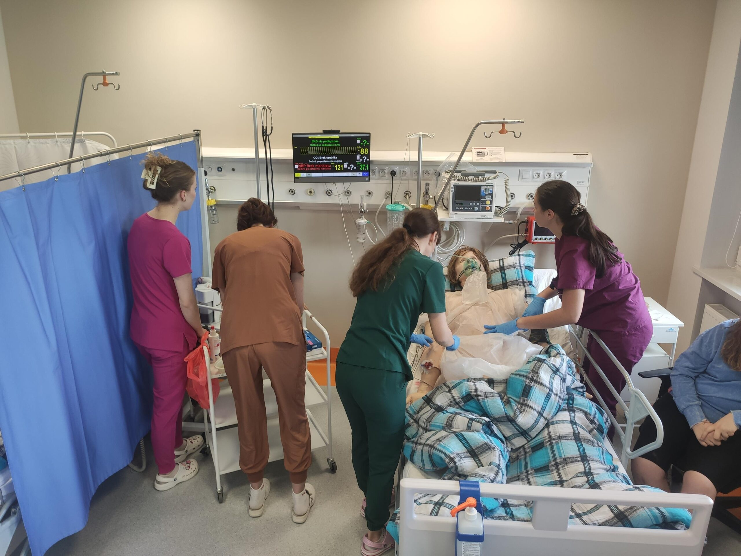 Zespół Innowacyjnego Centrum Symulacji Medycznej w składzie mgr inż. Mateusz Ptak, mgr Piotr Kubacki, Krzysztof Buczkowski, moja skromna osoba 😊 oraz zespół pod kierunkiem Pani dr Marty Gawlik (Koordynatora kierunku Pielęgniarstwo) z niezastąpioną Panią mgr Joanną Cappek oraz dydaktykami: dr Katarzyną Szwamel, dr Elżbietą Szlenk-Czyczerską, mgr Ewą Ledwoń, dr Ewą Radwańską, mgr Joanną Bednarz oraz mgr Jolantą Nawarą, którzy przygotowali scenariusze i pełnili rolę sędziów zmierzył się z przygotowaniem 4 zadań w tym jednego sprawnościowego. W całym przedsięwzięciu dzielnie wspierali nas Panowie mgr Marcin Gajda oraz inż. Mateusz Ganczarski.