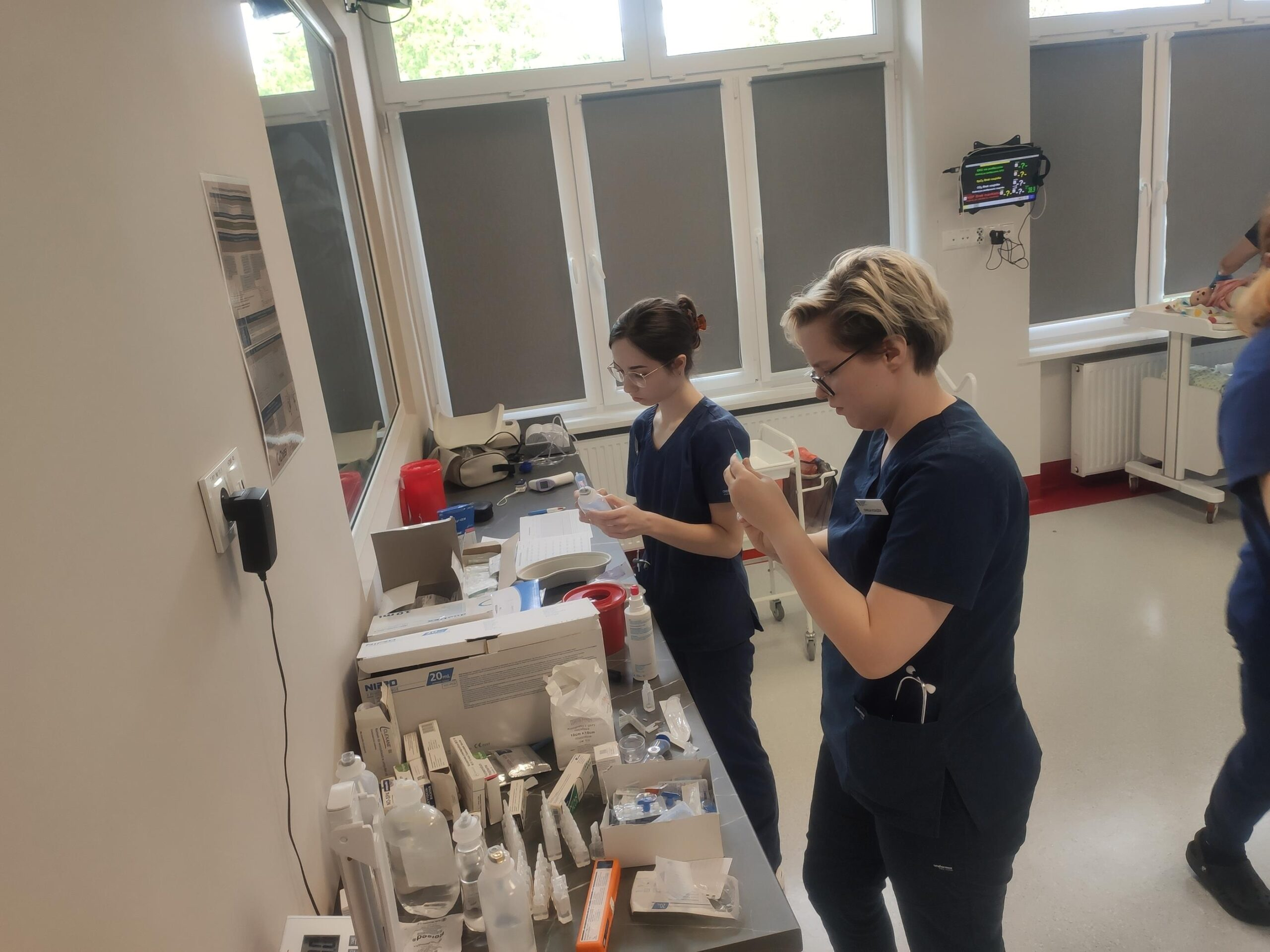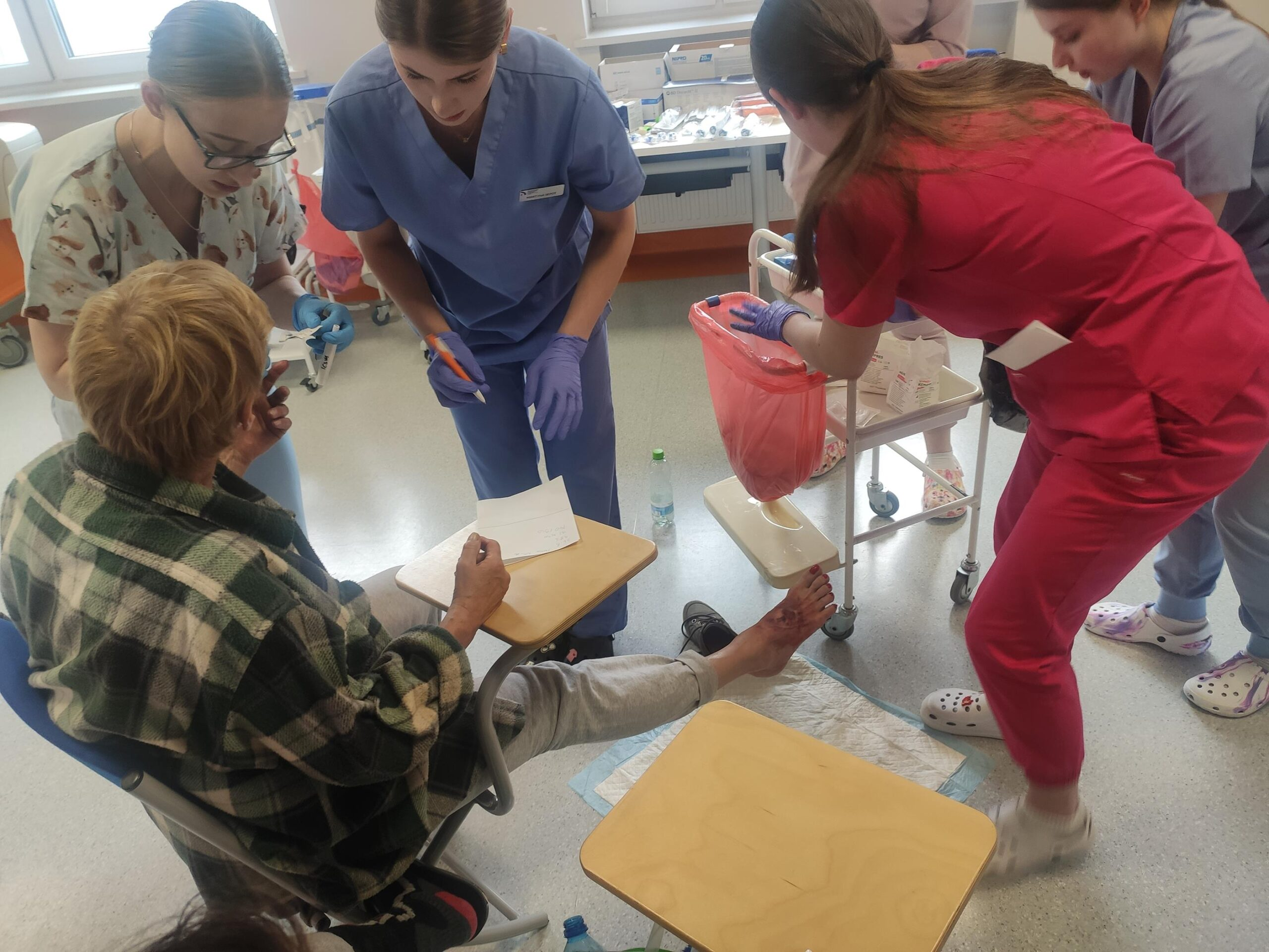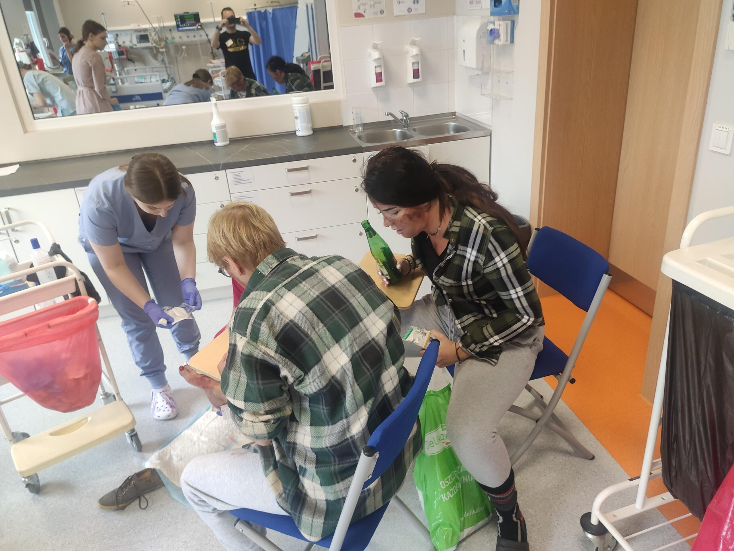 Zespół Innowacyjnego Centrum Symulacji Medycznej w składzie mgr inż. Mateusz Ptak, mgr Piotr Kubacki, Krzysztof Buczkowski, moja skromna osoba 😊 oraz zespół pod kierunkiem Pani dr Marty Gawlik (Koordynatora kierunku Pielęgniarstwo) z niezastąpioną Panią mgr Joanną Cappek oraz dydaktykami: dr Katarzyną Szwamel, dr Elżbietą Szlenk-Czyczerską, mgr Ewą Ledwoń, dr Ewą Radwańską, mgr Joanną Bednarz oraz mgr Jolantą Nawarą, którzy przygotowali scenariusze i pełnili rolę sędziów zmierzył się z przygotowaniem 4 zadań w tym jednego sprawnościowego. W całym przedsięwzięciu dzielnie wspierali nas Panowie mgr Marcin Gajda oraz inż. Mateusz Ganczarski.