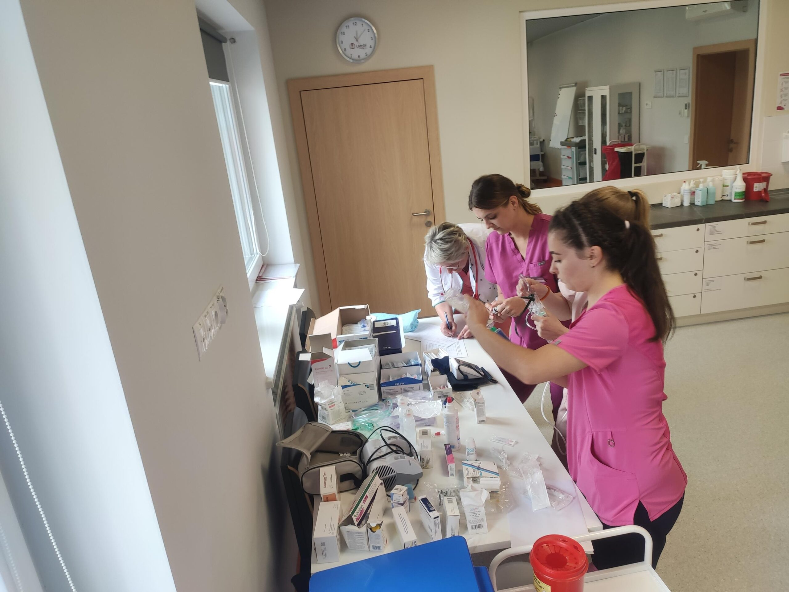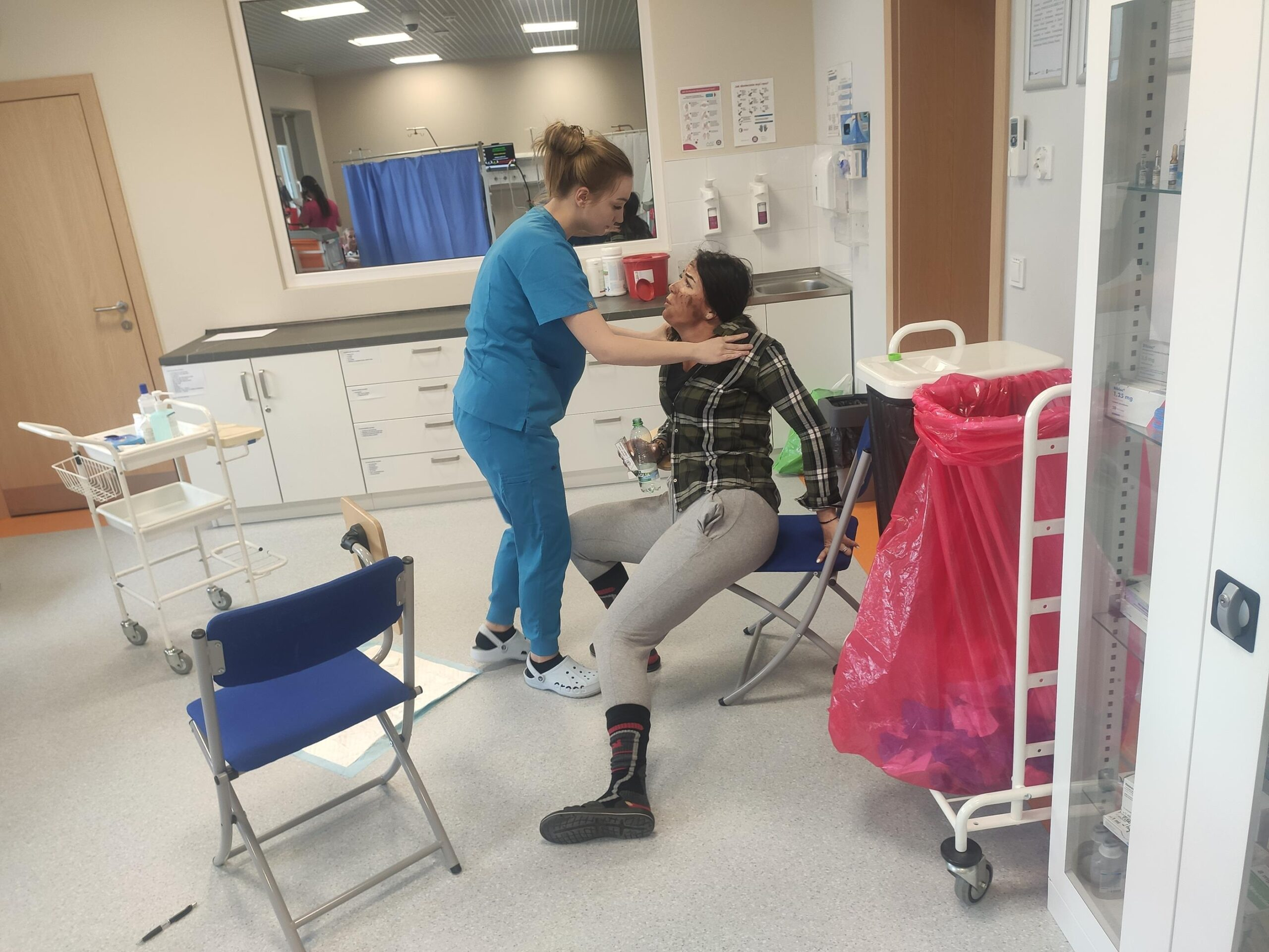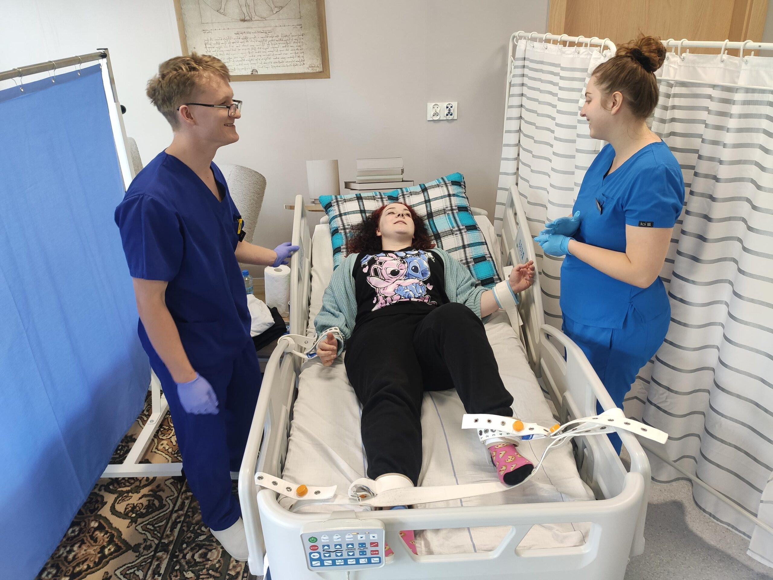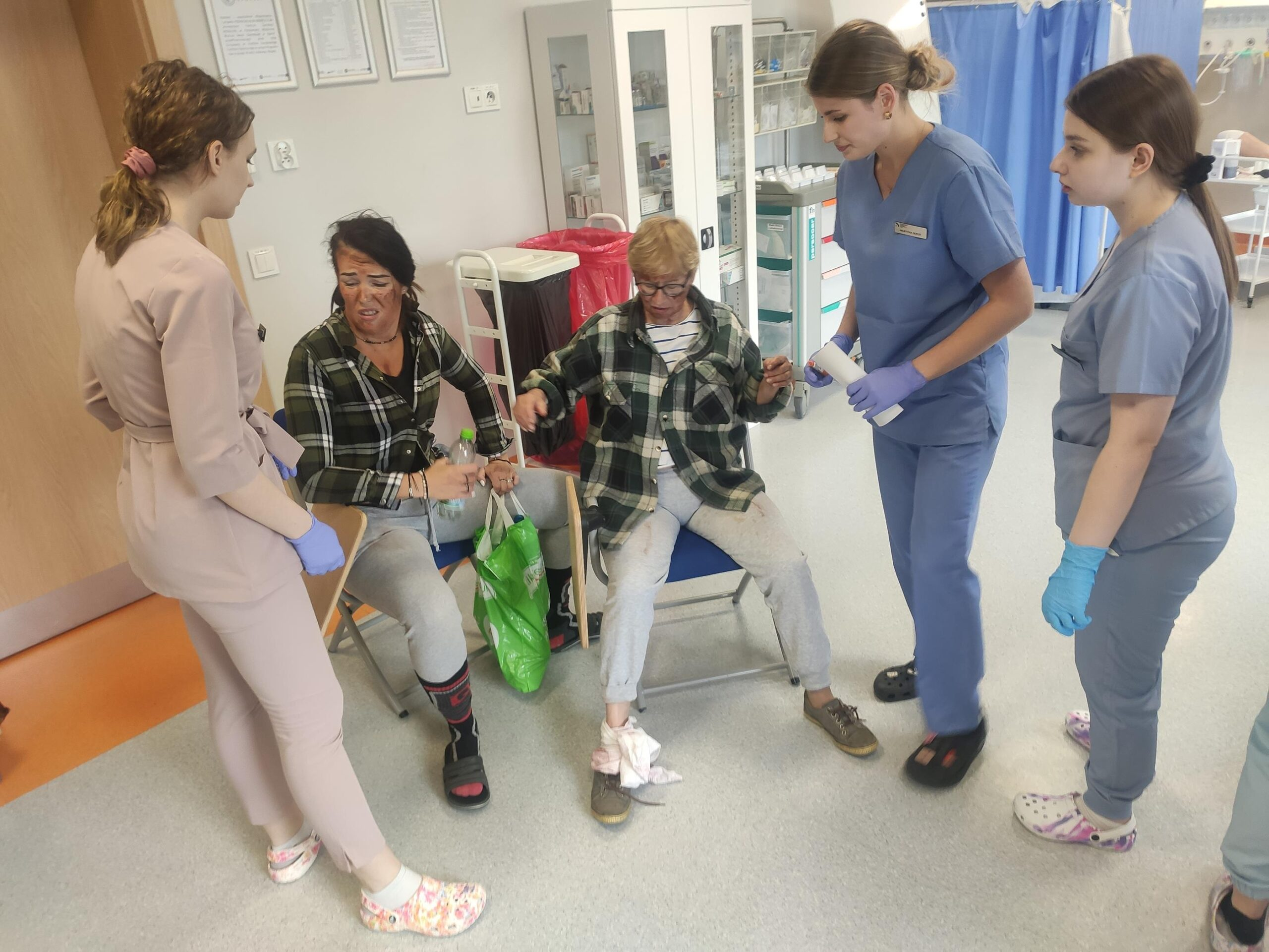 Zespół Innowacyjnego Centrum Symulacji Medycznej w składzie mgr inż. Mateusz Ptak, mgr Piotr Kubacki, Krzysztof Buczkowski, moja skromna osoba 😊 oraz zespół pod kierunkiem Pani dr Marty Gawlik (Koordynatora kierunku Pielęgniarstwo) z niezastąpioną Panią mgr Joanną Cappek oraz dydaktykami: dr Katarzyną Szwamel, dr Elżbietą Szlenk-Czyczerską, mgr Ewą Ledwoń, dr Ewą Radwańską, mgr Joanną Bednarz oraz mgr Jolantą Nawarą, którzy przygotowali scenariusze i pełnili rolę sędziów zmierzył się z przygotowaniem 4 zadań w tym jednego sprawnościowego. W całym przedsięwzięciu dzielnie wspierali nas Panowie mgr Marcin Gajda oraz inż. Mateusz Ganczarski.