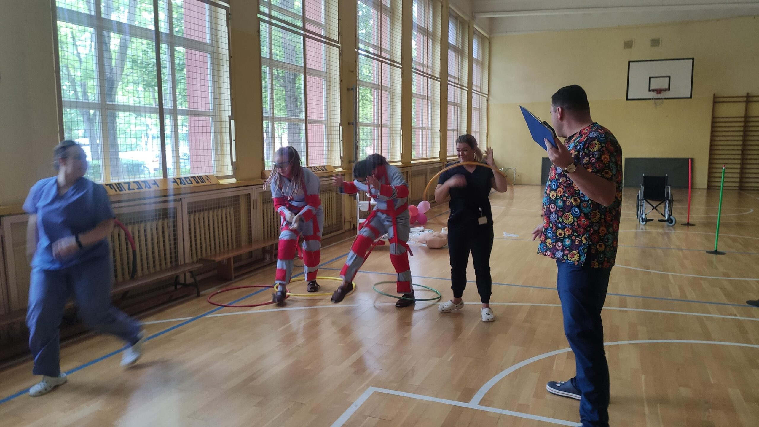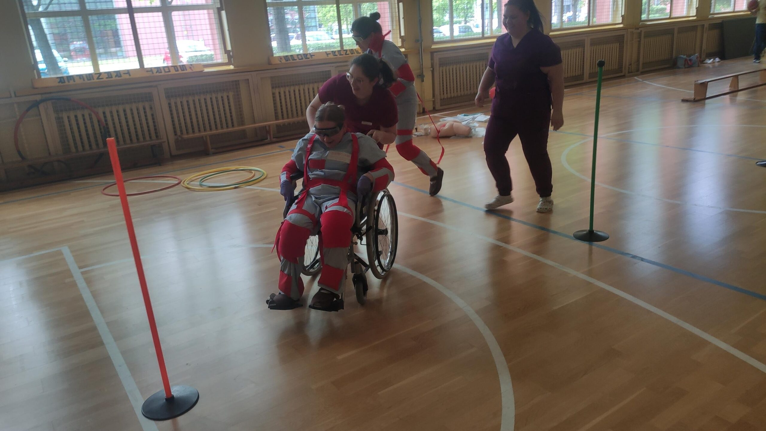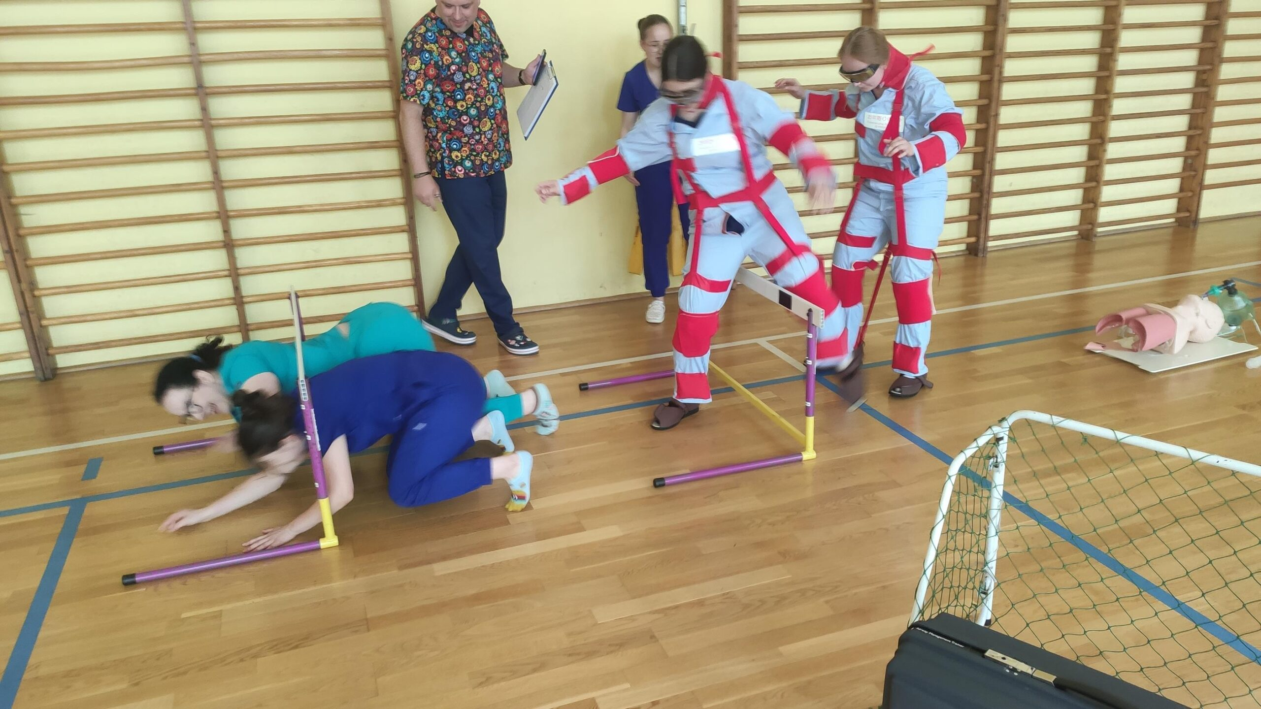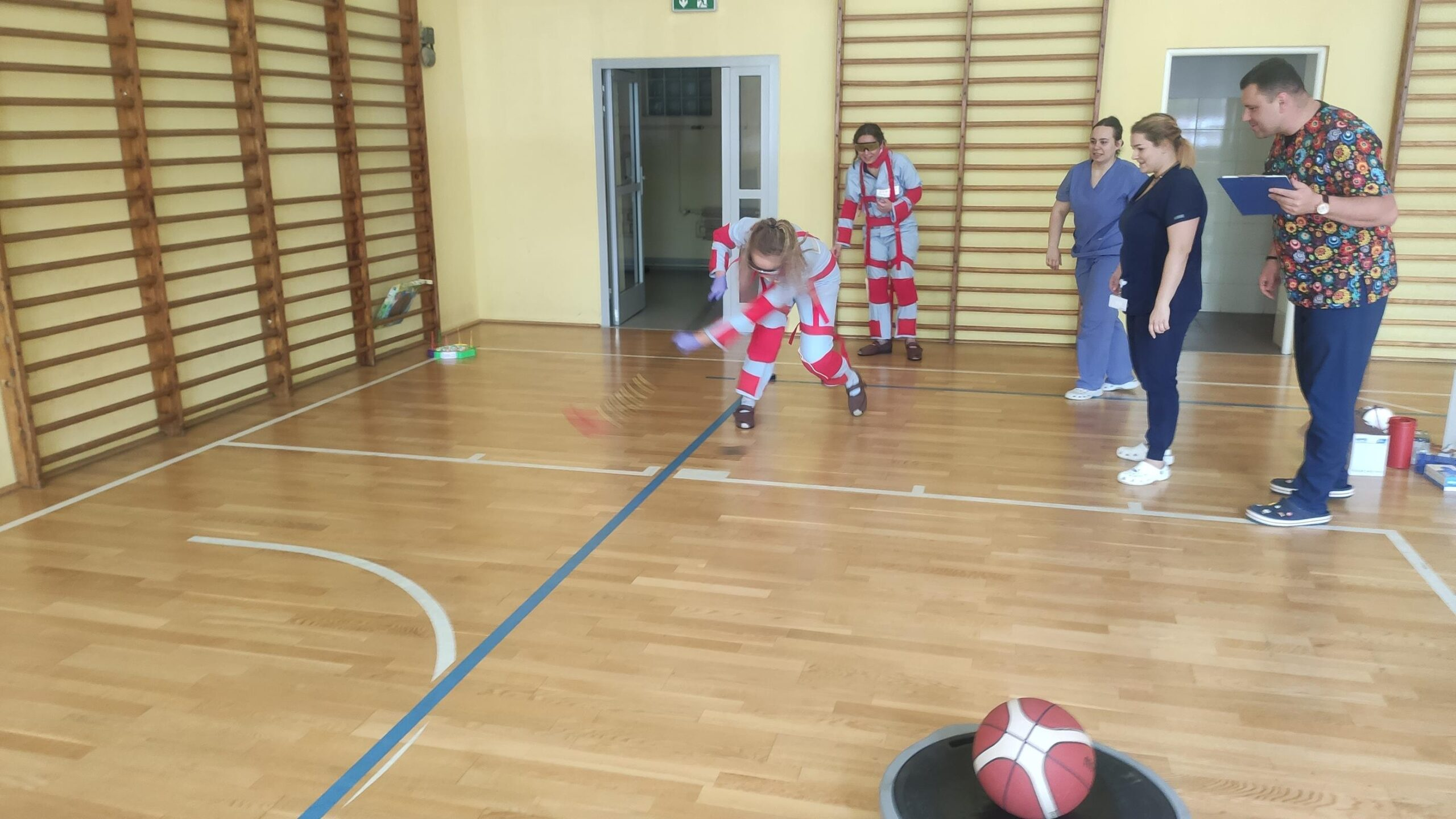 Tradycyjnie, jedno zadanie było na sali gimnastycznej gdzie uczestnicy musieli się wykazać umiejętnościami w wykonywaniu pojedynczych procedur, przeplatanych zadaniami sportowymi i sprawnościowymi. Dodatkowym utrudnieniem było wykonywanie tych czynności w kombinezonach geriatrycznych.