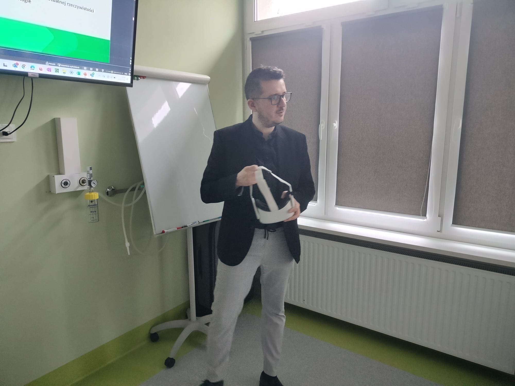 W poprzednim tygodniu mury Innowacyjnego Centrum Symulacji Medycznej na Wydziale Nauk o Zdrowiu UO odwiedził przedstawiciel firmy Asseco Data Systems S.A., Pan Rami Piotr Tęcza. Zaprezentował on dwa produkty swojej firmy: Uczelnia 3.0 oraz Symulatory VR.