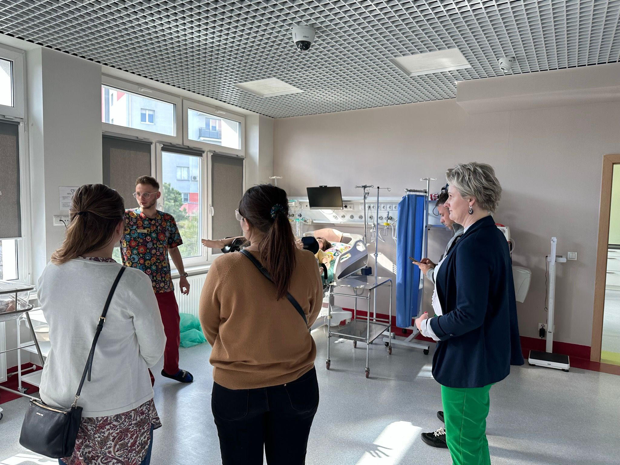 Spotkaniu towarzyszyła oczywiście wizyta partnerów projektu w naszym Centrum Symulacji Medycznej (CSM). Uczestnicy poznali cele i główne działania realizowane w pracowniach, a także mieli możliwość zapoznania się z innowacyjnym wyposażeniem.